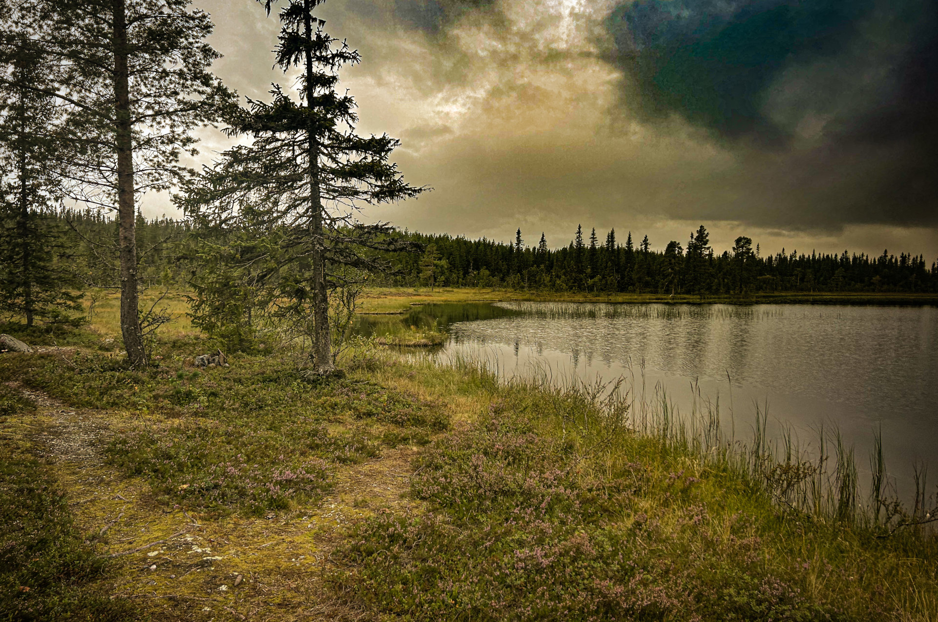 Een sfeer van slecht weer bij het bergmeer in Galåbodarna