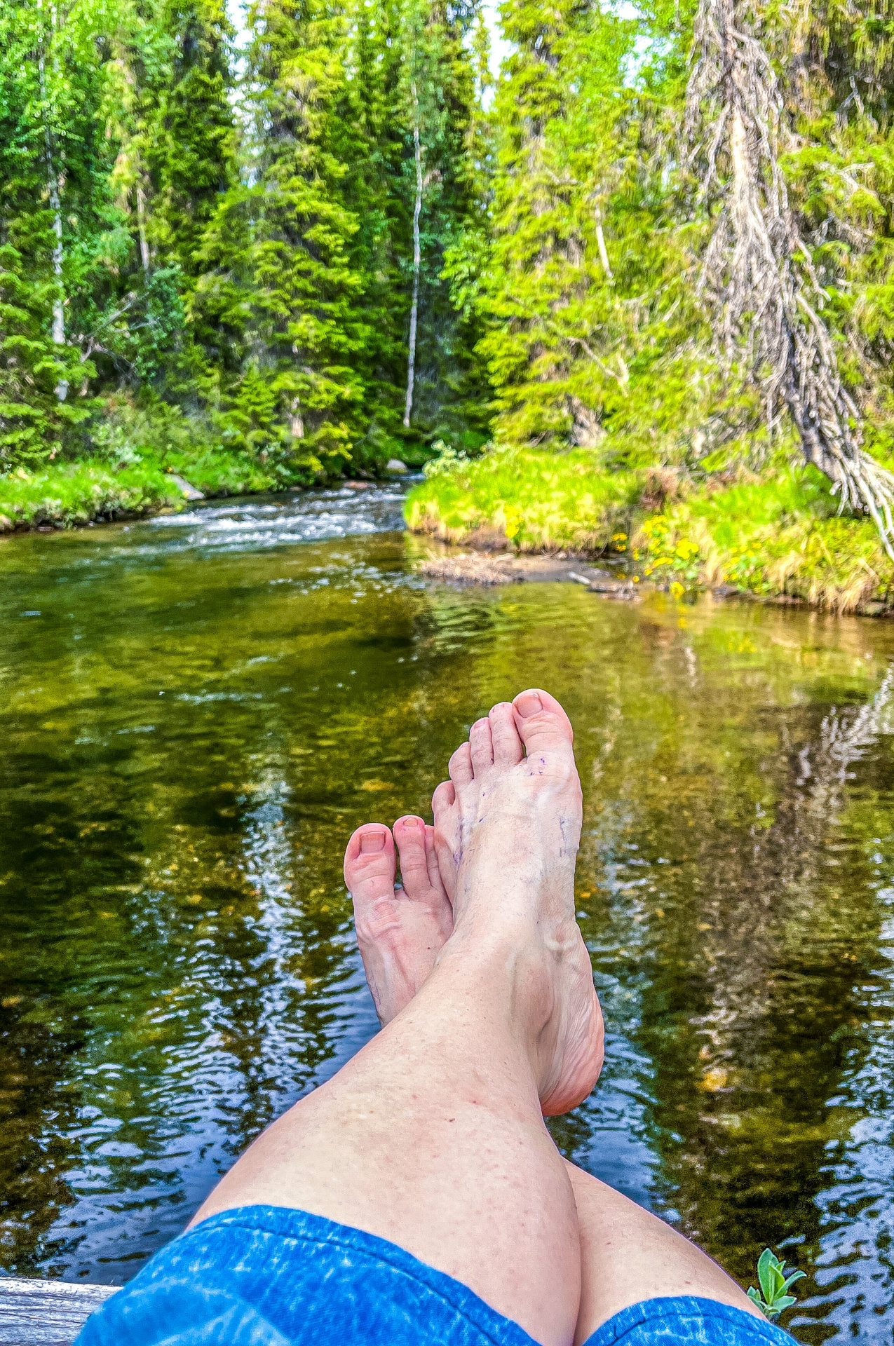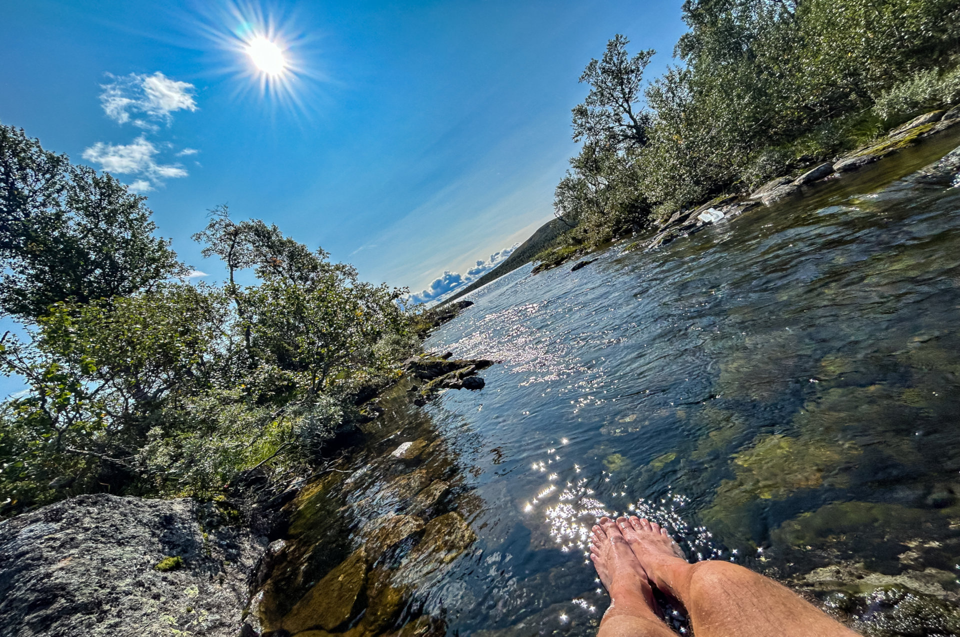 Voeten afkoelen in een van de vele bergmeren in de Jämtlandsfjäll