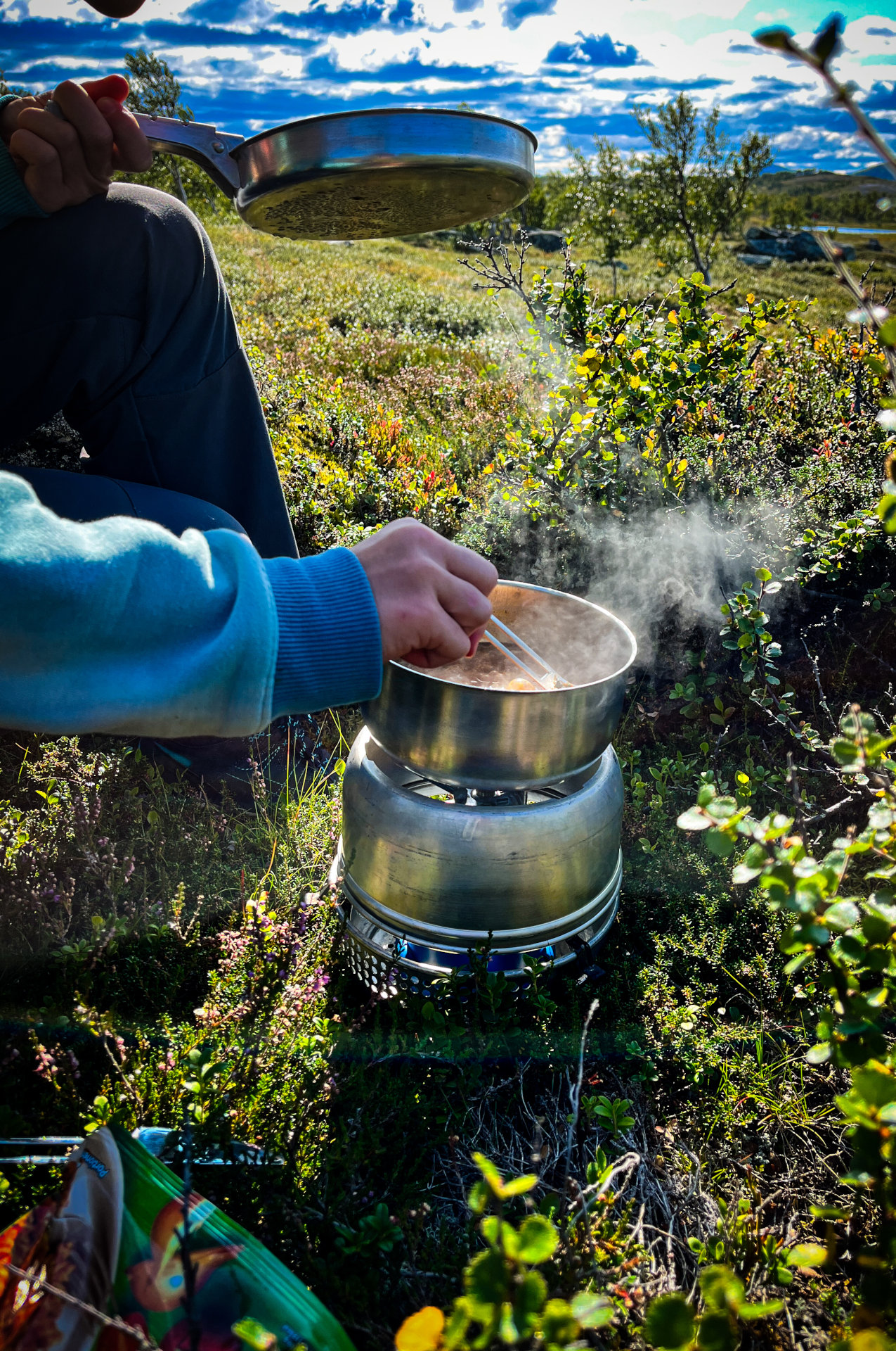 Koken op het Trangia-fornuis tijdens het wandelen