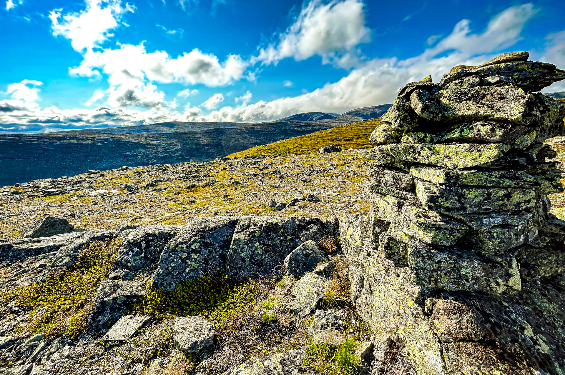 Het wordt herfst in de bergen - hier op een top van de Hästryggen in Jämtland