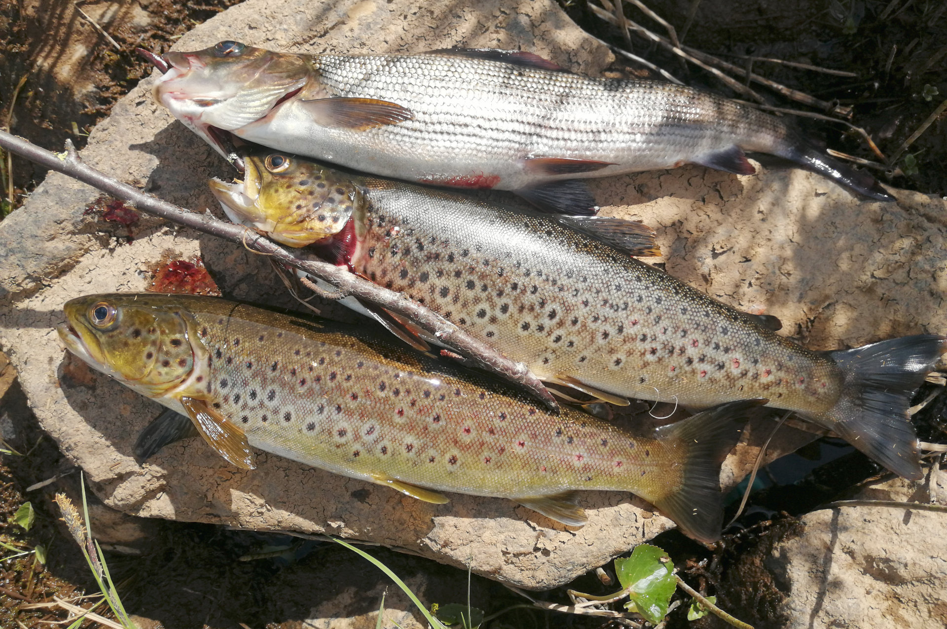 Fiskelycka med två öringar