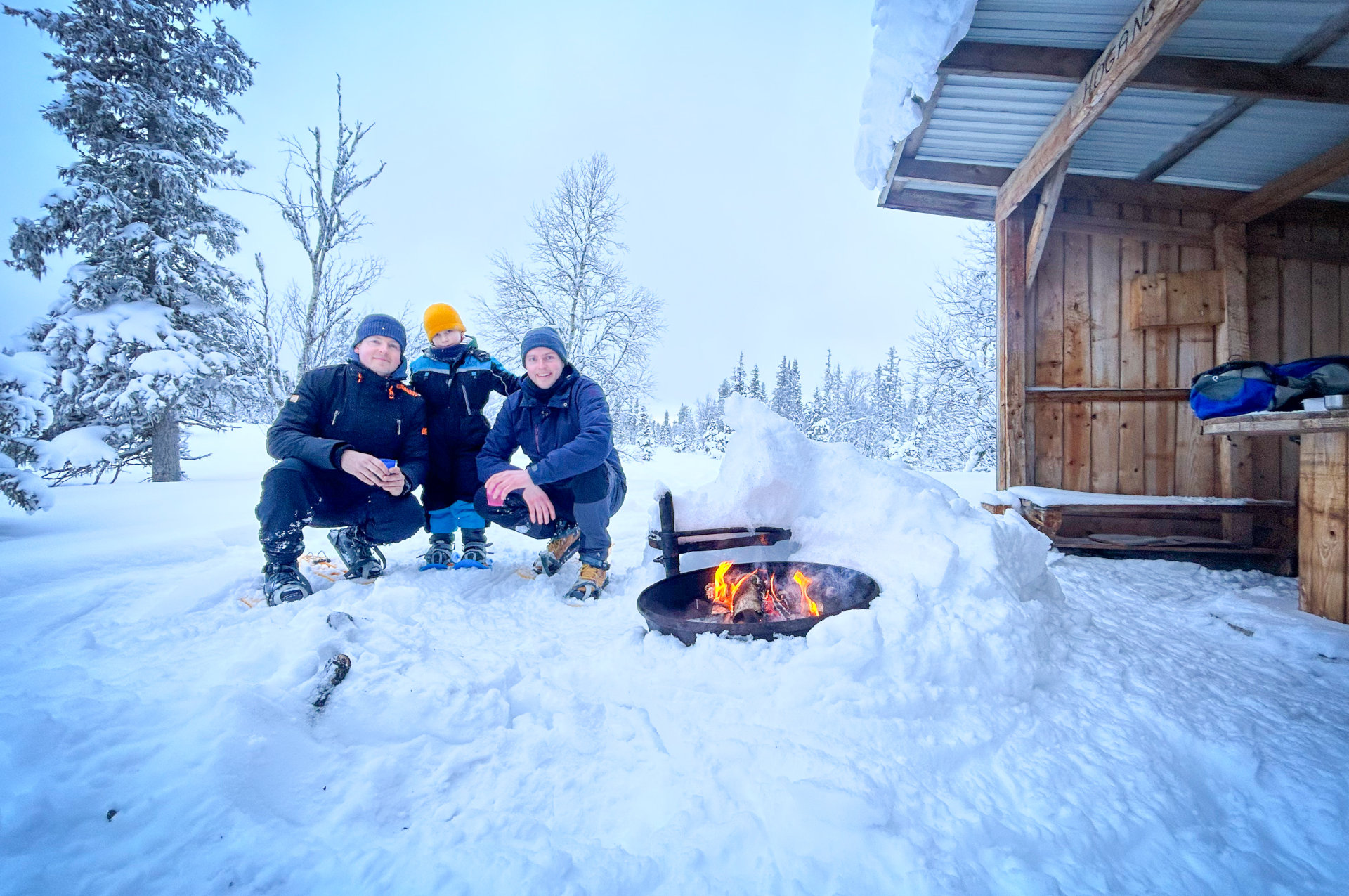 Med snöskor till Galåbodarnas vindskydd med brasa